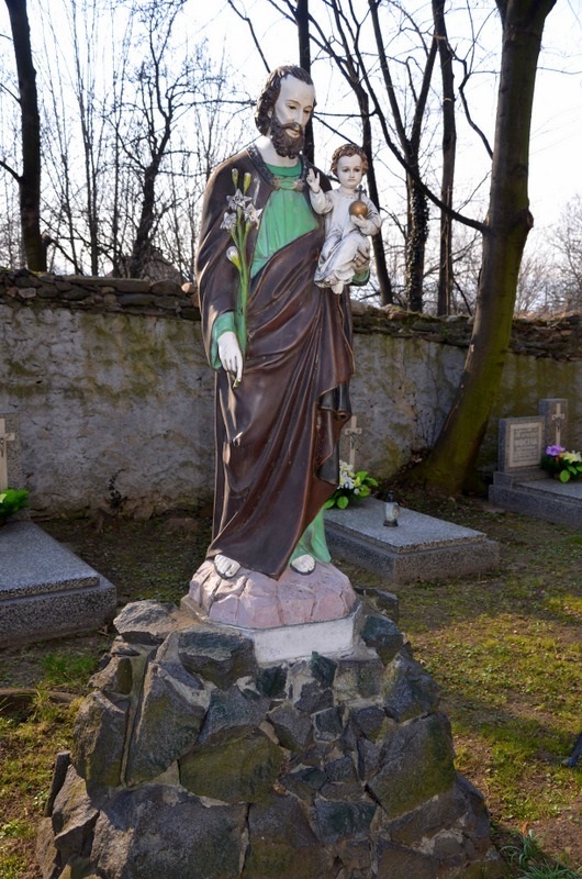 Figura Józefa z Nazaretu, męża Marii nazywanego często jej Oblubieńcem stoi nieopodal wejścia do kościoła p.w. św. Barbary. Rzeźba stoi na murowane z kamieni podstawie. Św. Józef przedstawiony jest w pozycji stojącej z Dzieciątkiem Jezus na lewej ręce oraz lilią – symbolem czystości trzymanej w prawej ręce. Dzieciątko w lewej ręce trzyma jeden z symboli władzy królewskiej, jabłko królewskie zwieńczone krzyżem.