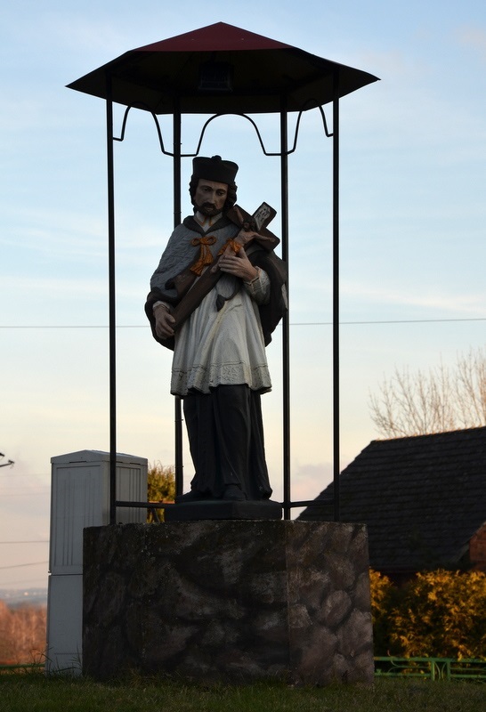 W centrum wsi, pod koniec XVIII wieku wzniesiono niewielką kapliczkę św. Jana Nepomucena. W kapliczce tej umieszczono figurę tego świętego. Kapliczkę rozebrano w 1908 r, a rok później na tym samym miejscu wzniesiono kaplicę większą. Kaplica ta przetrwała do 1996 roku kiedy to została rozebrana. Było to związane z przebudową układu komunikacyjnego wymuszonego zwiększonym ruchem samochodowym. Na miejscu byłej kapliczki powstało rondo, a na środku ronda postawiono figurę św. Jana Nepomucena. Figura stoi pod zadaszeniem, na wielobocznej kamiennej podstawie. Jan Nepomucen stoi w kontrapoście, ubrany w sutannę, komżę, pelerynę, biretem na głowie oraz krzyżem trzymanym przy piersi.