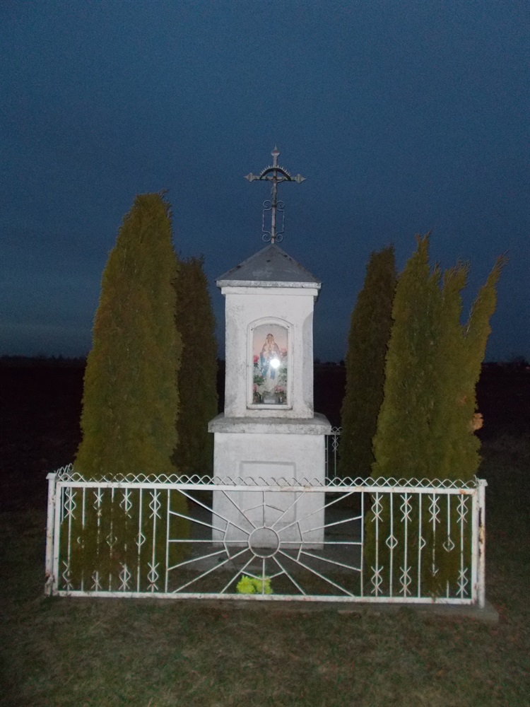 Kapliczka na pograniczu wsi Zaręby, Zalesie Kolonia oraz Elżbiecin. 52˚53ʹ46.5ʺ N i 21˚00ʹ19.1ʺ E