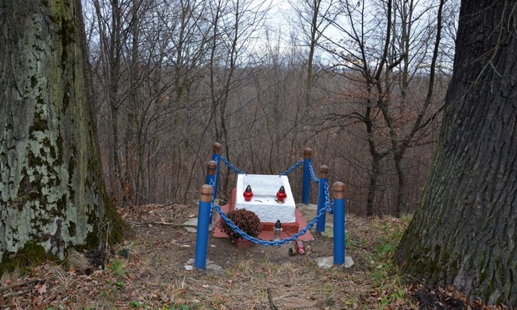 Przy drodze nr 411, pomiędzy dwoma wiekowymi dębami znajduje się niepozorny pomnik. Składa się z poziomej płyty z tablicą pamiątkową. Otoczony jest słupkami połączonymi luźno zwisającymi odcinkami łańcucha. O tym pomniku, poza mieszkańcami pobliskich miejscowości chyba mało kto wie. Czyżby ten skromny pomnik skazany był na zapomnienie?