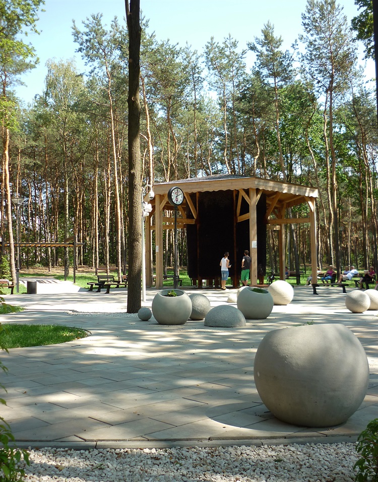 Znajduje się tam ciąg ścieżek pomiędzy dużymi sosnami, otwarta siłownia, stoliki do gry w szachy, a także, co najważniejsze - tężnia solankowa. To druga, po konstancińskiej, tężnia na Mazowszu i pierwsza umożliwiająca całkowicie darmowe korzystanie z dobrodziejstw wdychania mikroelementów wytwarzających się podczas procesu zachodzącego w takich instalacjach. W zapleczu park posiada szalet.