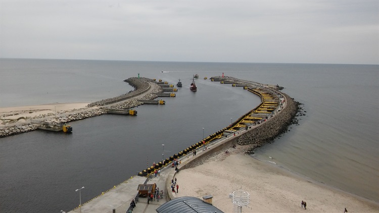 Kołobrzeski port osłaniają dwa falochrony - wschodni i zachodni. Wschodni ma długość ok. 308 m, a zachodni ok. 205 m. Falochron wschodni jest jedną z atrakcji turystycznych Kołobrzegu. Obecnie wstęp jest płatny - 1 zł.