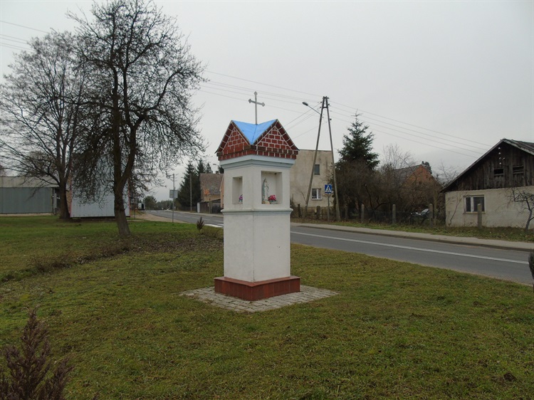 Lutol Mokry to nieduża wieś sołecka w gminie Trzciel w województwie lubuskim. Przez miejscowość przebiegają drogi łączące wspomniany Trzciel ze Zbąszyniem i Dąbrówką Wielkopolską. Przy ich skrzyżowaniu stoi zadbana kapliczka przydrożna. Jest to murowany słupowy obiekt z czterema wnękami, w których znajdują się dwie figurki Matki Boskiej oraz dwa drewniane krzyże. Kapliczkę wieńczy wielospadowy daszek na planie krzyża z metalowym krucyfiksem w szczycie.