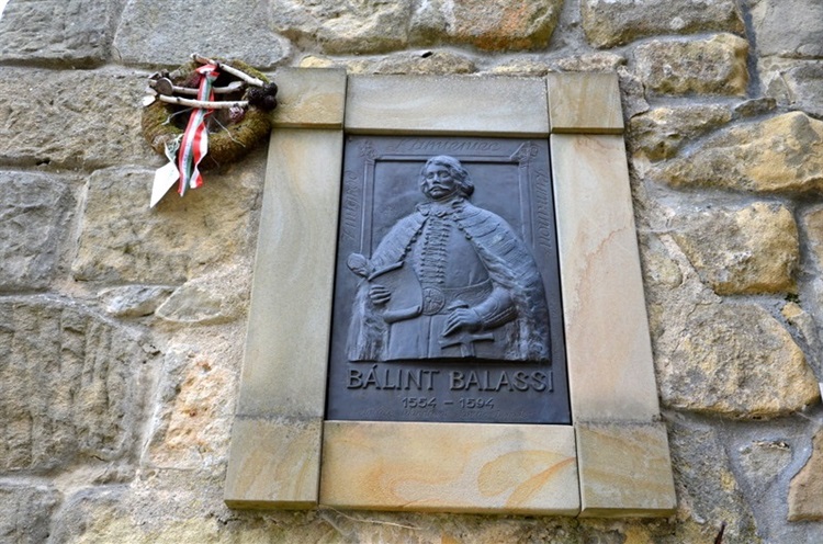 Zwiedzając malownicze ruiny zamku w Odrzykoniu na jednej ze ścian zauważyć można wmurowaną tablicę z brązu, z płaskorzeźbą popiersia mężczyzny. Mężczyzna ów w prawej ręce trzyma kartkę papieru i gęsie pióro. Pod płaskorzeźbą napis: "Bálint Balassi 1554 – 1594" oraz "Tablicę ufundował Tomas Demeter" natomiast powyżej nazwy trzech miejscowości: Żmigród, Kamieniec i Rymanów.