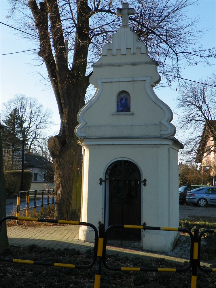 Kapliczka znajduje się w Starych Łabędach przy ul. Rzeczyckiej na rogu z Pszenną, trochę dalej “w górę” ulicą od kaplicy z ok. 1850 roku poświęconej św. Janowi Nepomucenowi. Istnieje hipoteza, iż kapliczka mogła zostać zbudowana przynajmniej jakieś 100 lat wcześniej. Mają o tym świadczyć wcześniejsze opisy małej budowli sakralnej, które sugerują wspomnianą hipotezę, ale istnieje jeszcze inny opis małej budowli, który początkowo próbuje obalić tę hipotezę, ale nie do końca. Jednak ostrożnie sugerując, większość znawców historii miasta czy regionu twierdzi na podstawie widocznej daty “1900”, iż kapliczka została w tym czasie zbudowana (o ile nie jest to rok jej remontu)...