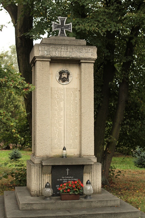 Na szczycie pomnika stoi żelazny krzyż z datami trwania I i II wojny światowej. Na płycie głównej pomnika wyryte są nazwiska mieszkańców poległych podczas I wojny światowej. W 2003 roku w dolnej części pomnika wmurowano płytę upamiętniającą ofiary II wojny światowej.