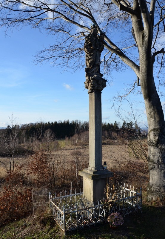 Po II wojnie światowej los nie oszczędzał kolumny. Stojąca na kolumnie figura Matki Bożej była dwukrotnie niszczona. Pierwszy raz strącona i w konsekwencji upadku pęknięta w połowie figura leżała u stóp kolumny. Po jej złożeniu ponownie posadowiona została na kolumnie. Za drugim razem figura skradziona została razem z kolumną. Pozostał jedynie prostokątny postument. Po pewnym czasie policja odnalazła rozbitą figurę u kamieniarza z Głogówka. Figura ponownie została poskładana i w chwili obecnej wieńczy sześciokątny wysoki słup. Niestety oryginalnej kolumny nie udało się odnaleźć.