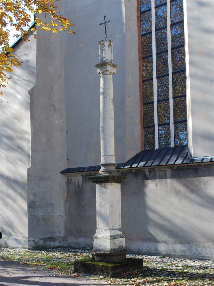Kolumna pochodzi z 1686 roku, widnieje na niej napis: "A. DNI 1686 I (lub J) G DIE MAR 22" i od tego napisu nazywano ją kolumną Dietmara. Według Mariana Kantora-Mirskiego, autora pierwszej monografii Olkusza, została ona ufundowana przez olkuskiego gwarka Jana Gwardzińskiego, prawdopodobnie na cześć zwycięskiej Odsieczy Wiedeńskiej z 1683 r. Obecnie kolumnę wieńczy krzyż, ale w przeszłości na szczycie znajdowała się kamienna figura Chrystusa frasobliwego, która obecnie przechowywana jest w kościele, przed którym się znajduje. Pierwotnie kolumna znajdowała się na rynku, na prawo od ratusza (wg. obrazu Zygmunta Vogla z końca XVIII w.). Obecnie kolumna znajduje się przed budynkiem Bazyliki pw. św. Andrzeja, od strony wschodniej (ul. Basztowa).