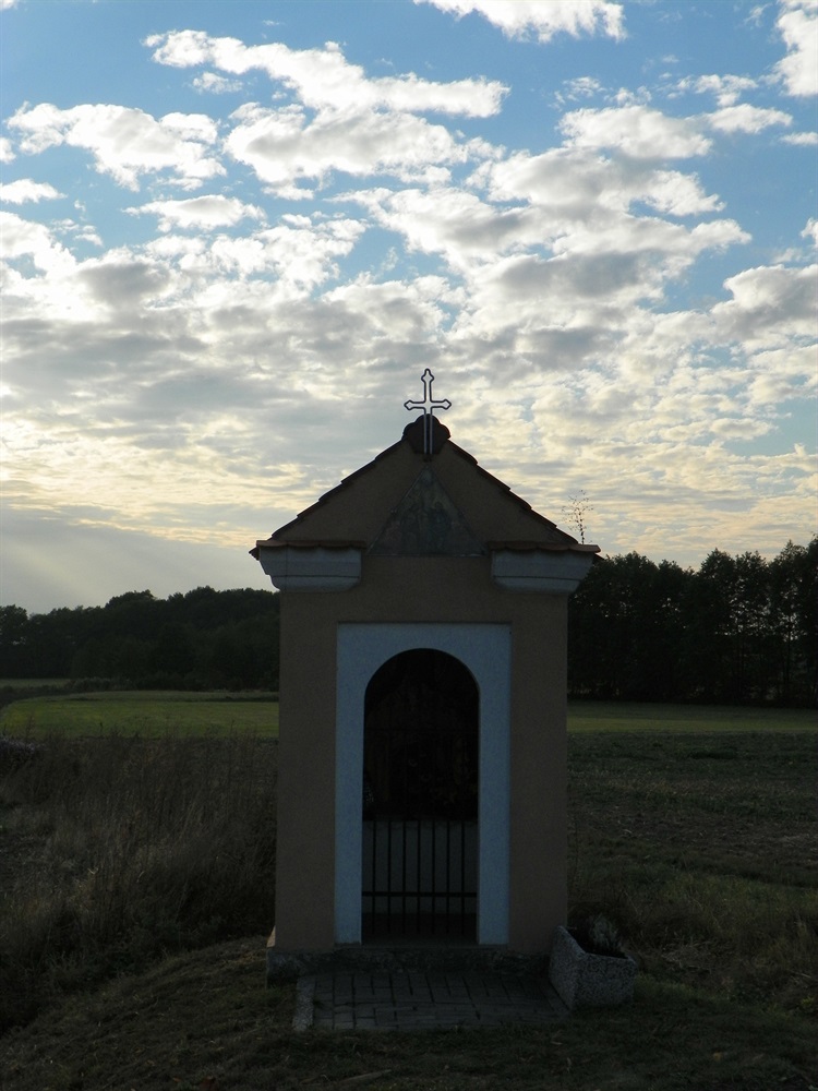 Kapliczka stoi dziś w polu, a może od chwili jej postawienia stała tylko w polu... Została ufundowana przez jednego z mieszkańców, Józefa Namysłę, w dowód wdzięczności za szczęśliwy powrót z frontu podczas I wojny światowej.