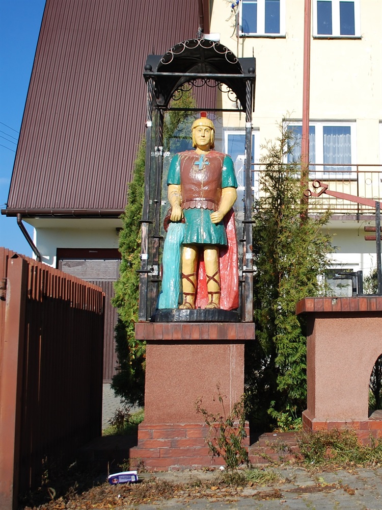 Fundatorem figury Janusz Adamski, cokół pod nią wykonali miejscowi strażacy. Uroczyste poświęcenie figury miało miejsce w dniu 22 maja 2010 roku. Figura znajduje się Przed remizą OSP przy ul. Źródlanej.
