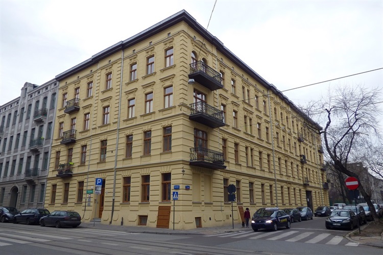 Pod koniec XIX w. właścicielami nieruchomości znajdującej się pod tym adresem byli Abram Geliebter i Jakub Joskowicz. W 1893 r. dostali oni zgodę na budowę murowanego, dwupiętrowego domu oraz dwóch jednopiętrowych oficyn. Projekty sporządził architekt Gustaw Landau-Gutenteger. W późniejszej ewidencji nieruchomości widnieje już sam Geliebter jako właściciel. On to też w 1898 r. nadbudował na istniejącym budynku trzecie piętro i dobudował drugi, trzypiętrowy dom mieszkalny z dwiema oficynami. Prace budowlane były wykonywane jak poprzednio według planów architekta Landau-Gutentegera.
