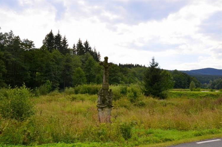 Grupa figuralna Ukrzyżowanie wzniesiona w XIX wieku stoi na skraju drogi przy zalewie należącym do ośrodka wypoczynkowego "Orlica". Ładny cokół z płaskorzeźbami przedstawiającymi sceny biblijne stoi na prostokątnej podstawie. Na rozbudowanym gzymsie cokołu umieszczony jest krzyż z postaciami u jego podstawy. Krzyż z ukrzyżowanym Chrystusem stoi na dodatkowym cokole i umieszczonej na nim podstawie. Trzy figury ustawione pod krzyżem to: Matka Boża, Jan Ewangelista i siedząca tyłem do krzyża Maria Magdalena.