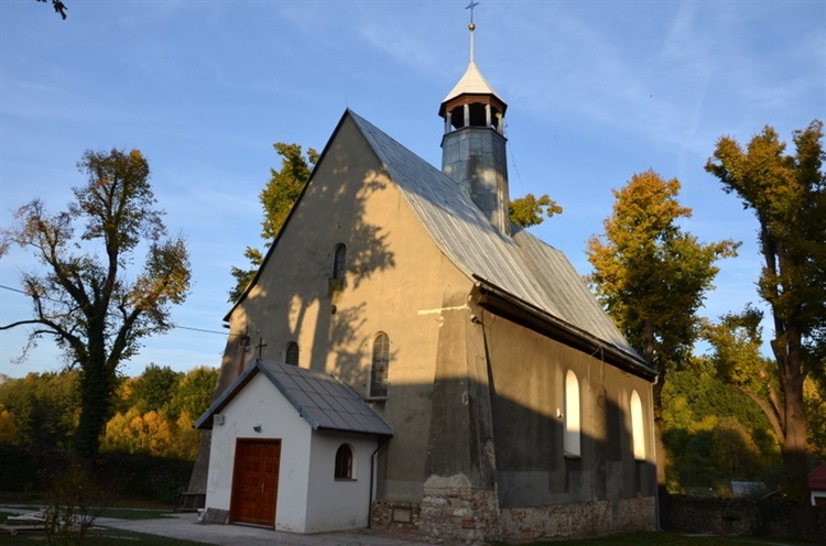 Kościół jest obiektem murowanym na planie prostokąta, salowy, z prosto zamkniętym prezbiterium. Nakryty jest dachem dwuspadowym z ośmioboczną sygnaturką nakrytą hełmem i zwieńczonym krzyżem. Wewnątrz na uwagę zasługuje późnobarokowy ołtarz oraz polichromia z motywami roślinnymi.