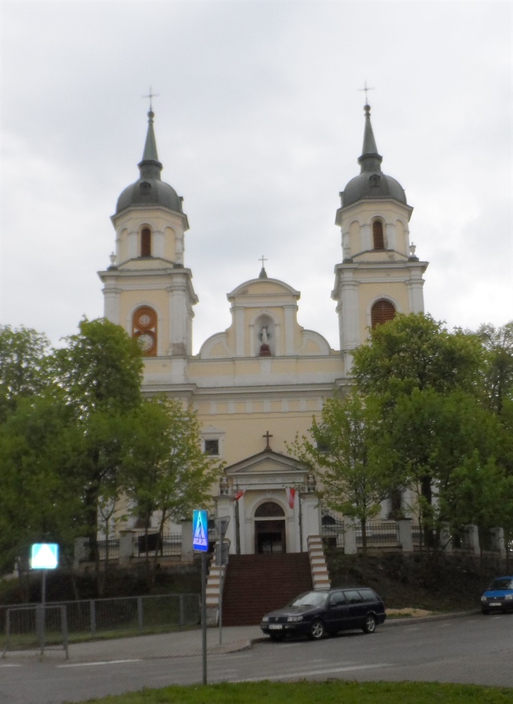 Była to świątynia murowana, trójnawowa, cała wewnątrz sklepiona z 12 oknami i dwoma wejściami - głównym od zachodu i bocznym od strony północnej. Nad wejściem głównym został umieszczony chór, który był wsparty na kolumnach. Dach pokryty dachówką a boczne nawy gontem. Na dachu znajdowała się sygnaturka, która to została uszkodzona w 1804 r. na skutek uderzenia pioruna. W 1852 r. została dobudowana kopuła. W 1857 r. został wzniesiony nowy ołtarz główny a 1887, w niszy ołtarzowej usytuowany został krzyż z figurką ukrzyżowanego Jezusa Chrystusa.