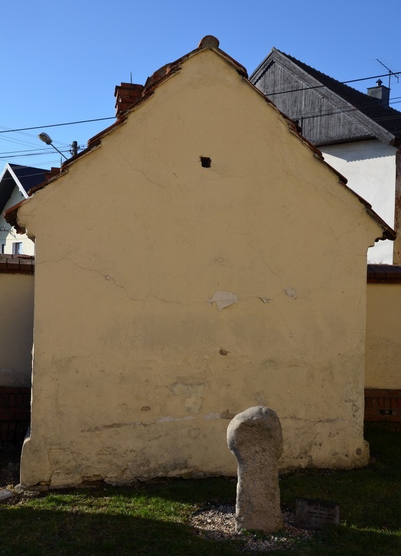 Na przykościelnym cmentarzu stoi kamienny krzyż. W zasadzie jest to trzon krzyża, bowiem krzyż pozbawiony jest ramion. Krzyż ten jest śladem zbrodni popełnionej w średniowieczu. Obok krzyża obowiązkowa tabliczka o treści „KRZYŻ POKUTNY XIV – XVI w STAWIANY PRZEZ ZABÓJCĘ W MIEJSCU ZBRODNI”.
