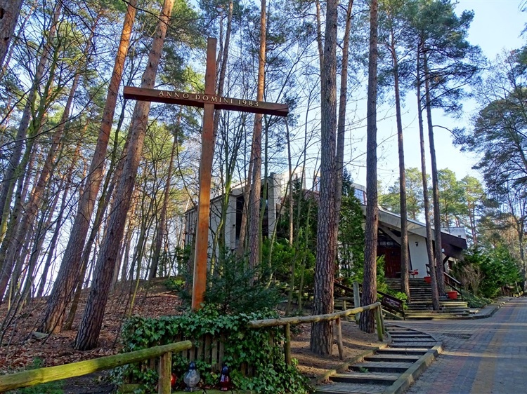 Na zewnątrz ustawiono wielkiej urody kapliczki. Figury w nich ustawione (Pieta, św. Sebastian, św. Weronika, św. Nepomucen) pochodzą z ołtarza papieskiego wybudowanego na sopockim Hipodromie w 1999 r. podczas pielgrzymki Jana Pawła II.