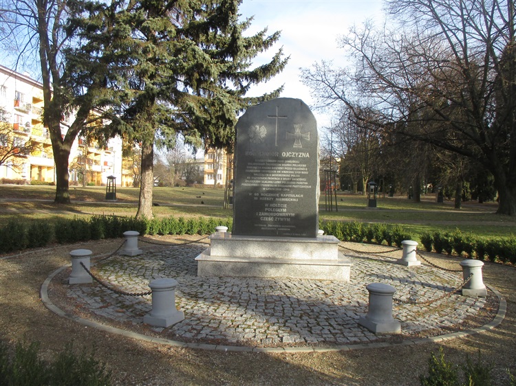 Pomnik upamiętniający kapitulację III Rzeszy odsłonięto 8 maja 2005 r w parku przy ulicy Piłsudskiego, niedaleko Starego Miasta. Na kamiennej tablicy wyryto napis, który głosi : BÓG HONOR OJCZYZNA SYNOM I CÓRKOM ZIEMI ZAMOJSKIEJ BOHATERSKIM ŻOŁNIERZOM WOJSKA POLSKIEGO BRONIĄCYCH NASZEJ OJCZYZNY PRZED NAJEŹDŹCĄ NIEMIECKIM I SOWIECKIM WE WRZEŚNIU 1939 R WALCZĄCYM O SUWERENNOŚĆ POLSKI NA WSZYSTKICH FRONTACH II WOJNY ŚWIATOWEJ ŻOŁNIERZOM SCALONEJ ARMII POLSKIEGO PAŃSTWA PODZIEMNEGO I POZOSTAŁYM ODDZIAŁOM PARTYZANCKIM W LATACH 1939-1945 W 60 ROCZNICĘ KAPITULACJI III RZESZY NIEMIECKIEJ W HOŁDZIE POLEGŁYM I ZAMORDOWANYM CZEŚĆ ŻYWYM WETERANI , ŻOŁNIERZE GARNIZONU MIESZKAŃCY ZAMOŚCIA ZAMOŚĆ 8 MAJA 2005