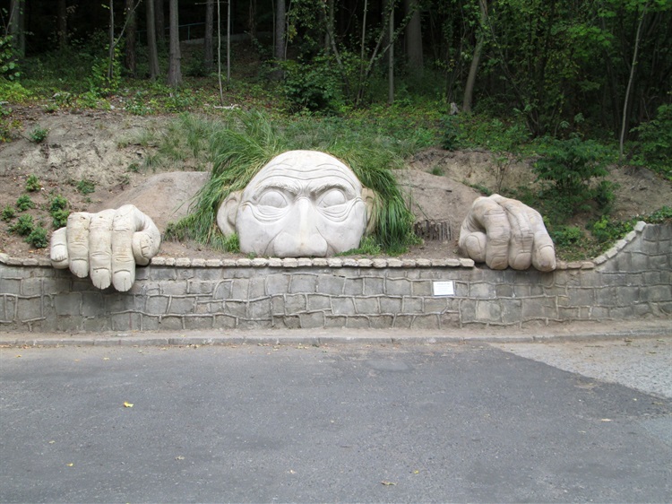 Spacerując ulicą Stanisława Moniuszki w Kudowie-Zdroju natrafimy na przestrzenną rzeźbę, która w znakomity sposób wkomponowana jest w zbocze Góry Parkowej. Przedstawia głowę mężczyzny oraz jego dłonie. Włosy mężczyzny tworzy naturalna roślinność. Głowę oraz ręce łączy korpus uformowany w sposób naturalny z ziemi.
