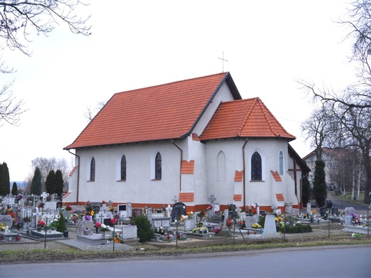 W 1680 r. na miejscu poprzedniej wybudowano nowy kościół, istniejący do dziś. To obiekt orientowany, jednonawowy z wyodrębnionym prezbiterium, ceglany otynkowany, bez wieży. Na wzór gotycki ściany nawy i prezbiterium są oszkarpowane, zaś okna zwieńczone ostrołukowo. Kruchta jest późniejszą dobudówką.