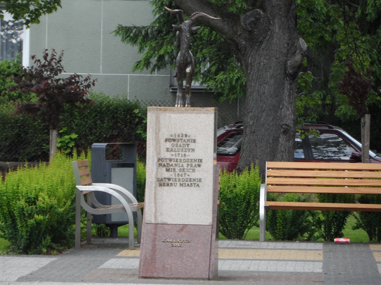 Historia Kałuszyna sięga 1429 r. kiedy to powstała osada, której to właścicielami kolejno były rody: Kałuskich, Orzeckich, Opackich, Rudzińskich, Różanieckich i Zamoyskich ostatnim był Aleksander Wątróbski. W 1718 r. kiedy to Kałuszyn był w rękach rodu Opackich otrzymał prawa miejskie, które zostały nadane przez króla Augusta II na Sejmie w Grodnie. W 1847 r. został zatwierdzony herb miasta z motywem kozła, który wywodzi się od klejnotu herbowego rodziny Zamojskich, właścicieli Kałuszyna. W 2011 r na placu Kilińskiego został ustawiony na murowanym cokole koziołek, herb miasta.