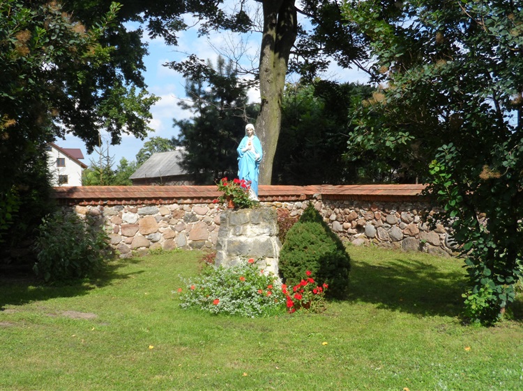 Figura Matki Boskiej Niepokalanego Serca znajduje przy murze kościoła św. Bartłomieja Apostoła. Figura Matki Boskiej jest ustawiona na murowanym z kamienia cokole.