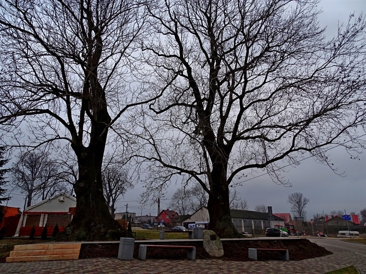 „Przy przystani rybackiej rosną pomniki przyrody/ pełne wielkiej dumy i pięknej urody/ To Świętopełk i Mściwoj – jesiony prawie 3 wiekowe/ które mimo 3 wieków są ciągle zdrowe”