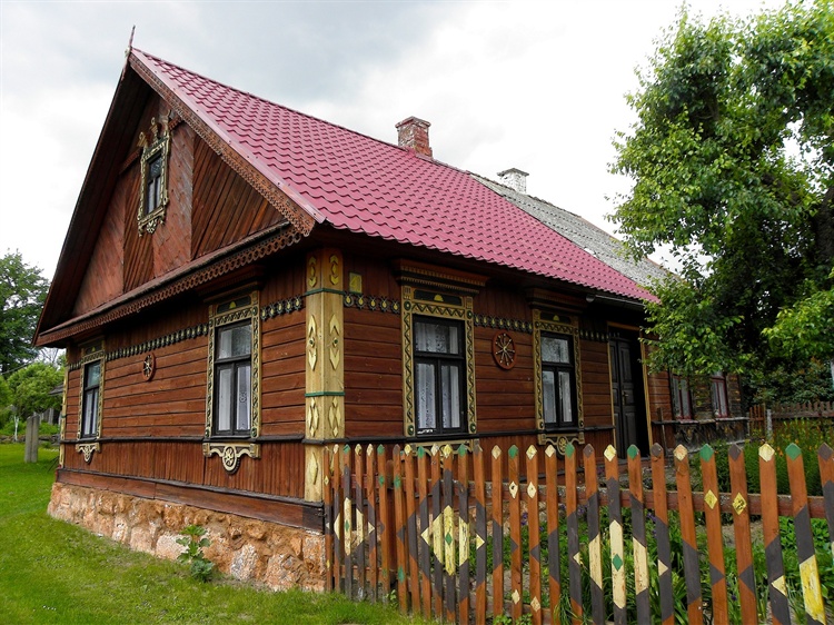 Chomontowce to położona w dolinie Świsłoczy wieś o historii sięgającej XVI wieku. Do białoruskiej granicy bardzo stąd blisko. Stojące wzdłuż ulicy chaty mają wiele uroku, ale dwie z nich są zupełnie wyjątkowe. Jak wszystkie w okolicznych wioskach wybudowane są z drewna, jednak ich ściany ozdobiono ornamentami godnymi chatki z bajki.