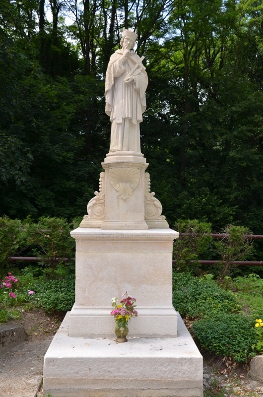 Kamienna figura św. Jana Nepomucena z lat 1885 - 1895 stoi obok drewnianego kościoła Wszystkich Świętych. Rzeźbę świętego wykonał z kamienia piaskowego miejscowy rzeźbiarz Józef Aszklar.