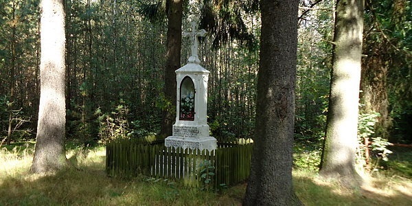 Przydrożna kapliczka z inskrypcją (pisownia oryginalna): "STROSKANA MATKA OFIAROWAŁA TĘ PAMIĄTKĘ NAIDROŻSZEMU SYNOWI BOLESŁAWOWI KULIKOWI. ŻYŁ LAT 28 I ZOSTAŁ NA WOINIE. ZA OICZYZNĘ POLEGŁ KOŁO KOLUSZEK W LESIE LAS DUŻE PRZYŁĘGI I TAM ZOSTAŁ POCHOWANY. CIAŁO PRZENIESIONE NA CMETAŻ WOISKOWY I ZŁOŻONE DOBRATNIEI MOGIŁY. WIEZOWIE BOLESŁAW KULIK PROSI SWEJ MATKI I WSZYSTKICH PRZECHODZONCYCH KOŁO PAMIĄTKI O ZDROWAŚ MARIA ZA IEGO DUSZĘ I WIECZNY ODPOCZYNEK"