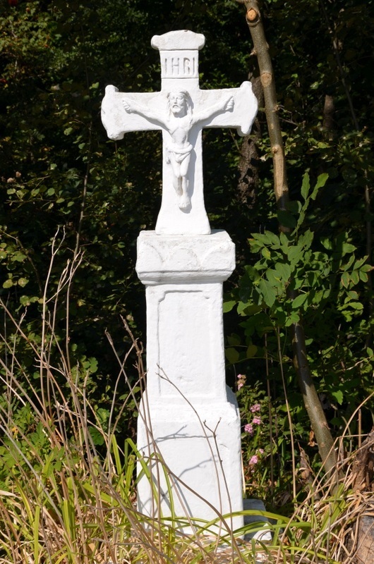 Kamienny krzyż wykonany przez kamieniarza z Brusna Starego stoi na skraju lasu niewielkiego przysiółka leżącego przy drodze prowadzącej z Horyńca-Zdroju do Nowego Brusna. Krzyż ustawiony jest na głowicy dwustopniowego postumentu, wierzchołek trzonu i ramiona ma zakończone w strzałkę. Nad głową ukrzyżowanego Chrystusa napis INRI. Krzyż został wykonany w 1893 roku, co można wyczytać z nieczytelnej inskrypcji wyrytej w płycinie w drugiej węższej części postumentu.