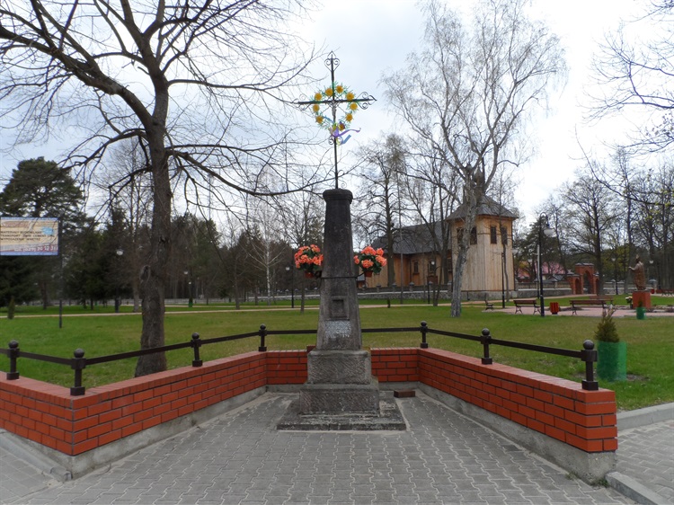 Krzyż znajduje się przy drodze w niedalekiej odległości od pomnika Jana Pawła II. Został ufundowany 1896 r. przez Stanisława Soliwodę.