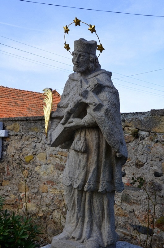 Figura św. Jana Nepomucena pierwotnie stała na kamiennym murze wzniesionym na przełomie XV i XVI wieku, przed kościołem św. Marcina. Obecnie stoi na granitowej prostokątnej podstawie przy zabytkowym murze kościelnym.