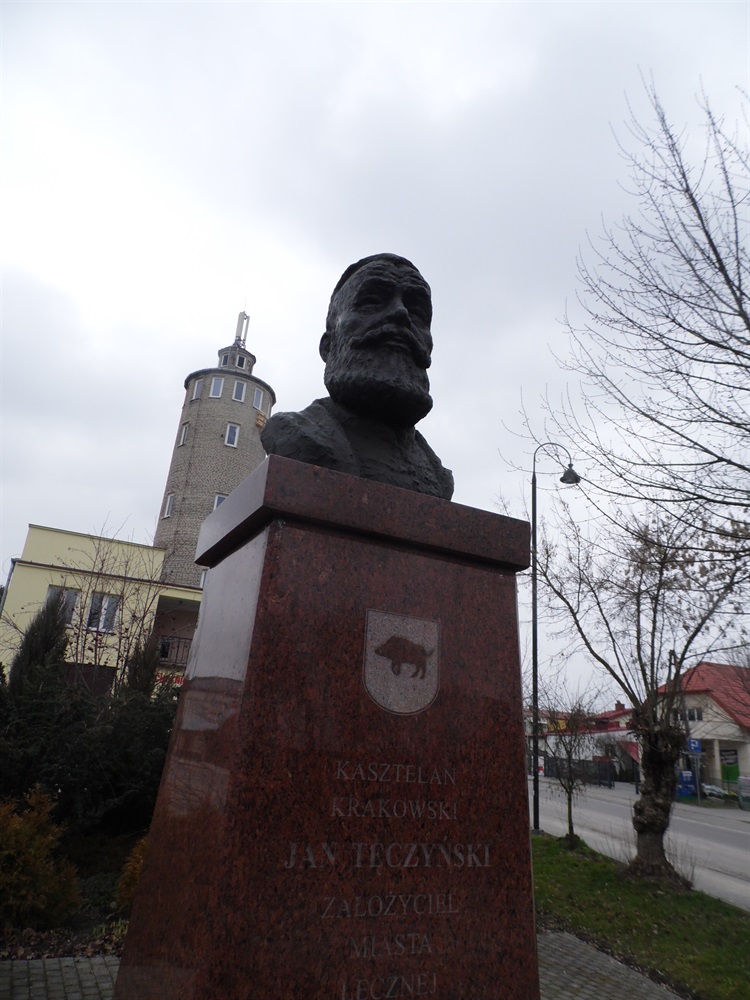 Pomnik Jana Tęczyńskiego, kasztelana krakowskiego, założyciela miasta Łęczna w 1467 r. To dzięki jego staraniom istniejąca tu wieś dostała prawa miejskie i lokowanie miasta na prawie magdeburskim.