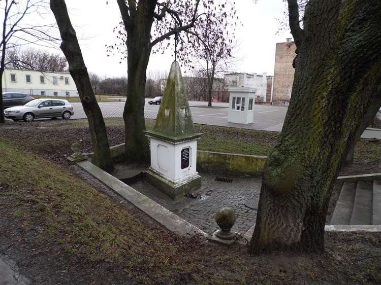 Podobno najstarszy pomnik Lublina. Postawiony w 1656 r. ale przypuszcza się, że ufundowali go żołnierze szwedzcy, aby uczcić swojego poległego pułkownika, którego dane do dnia dzisiejszego się nie zachowały. Z dawnej budowli pozostała tylko środkowa część, a podczas remontu w 1910 r. tabliczkę zmieniono, wspominając wojska Pawła Sapiehy. Obecna tabliczka na pomniku oceniana, że powstała faktycznie na początku XX w głosi: "Poległym żołnierzom polskim w bitwie ze Szwedami pod dowództwem P. Sapiehy wojewody wileńskiego w 1656 r." Pomnik znajduje się przy ulicy Jaczewskiego, w pobliżu wjazdu na parking do szpitala im. Jana Bożego, naprzeciwko Collegium Anatomicum.