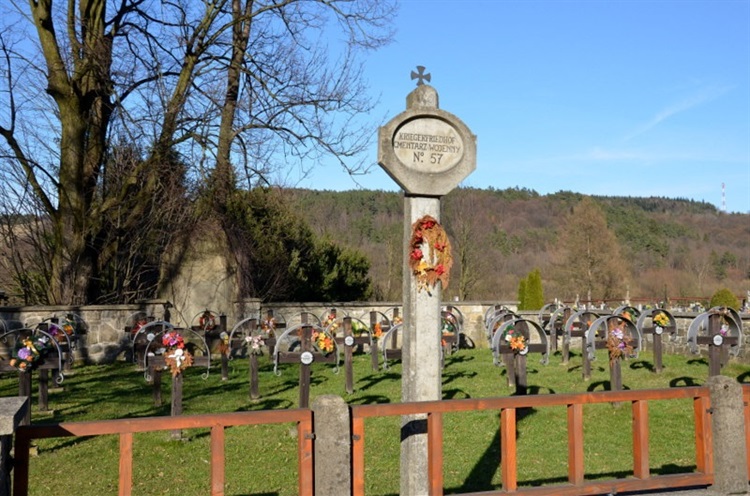 Cmentarz wojenny z I wojny światowej nr 57 usytuowany jest po prawej stronie drogi prowadzącej do Klimkówki i sąsiaduje z cmentarzem parafialnym. Cmentarz projektował Dušan Samuela Jurkoviča – słowacki architekt, projektant i etnograf. Został wzniesiony na planie zbliżonym do prostokąta, zajmuje powierzchnię około 425 m² i jest ogrodzony z trzech stron murem kamiennym, a od strony drogi drewnianą balustradą mocowaną do betonowych słupków.