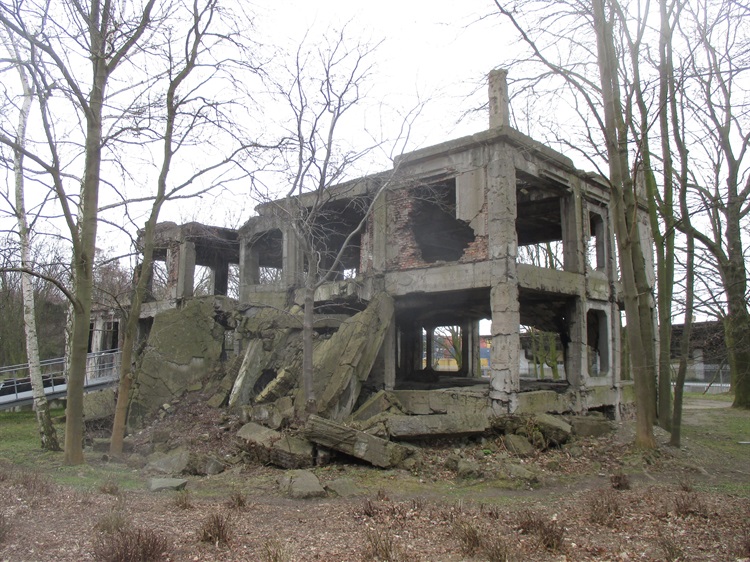 Budynek był nowoczesny- miał obszerne sanitariaty, centralne ogrzewanie. Był zaprojektowany tak, aby dwie górne kondygnacje absorbowały energię wybuchów, pozostawiając załogę bezpieczną w podziemiach. Koszary uległy znacznemu zniszczeniu po nalotach, ale budynek przetrwał tydzień walki. Tuż po wojnie Rosjanie dokonali na terenie koszar prób materiałów wybuchowych i detonacji niewybuchów, co ostatecznie zrujnowało pozostałości powojenne...