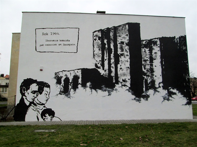 Na skrzyżowaniu ulic Kurpińskiego i Poniatowskiego znajduje się mural upamiętniający zniszczenie kościoła p.w. św. Szczepana.