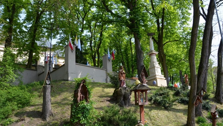 Na Wzgórzu Kościelnym zwanym również Wzgórzem Bochotnickim, wśród drzew stoi kościół św. Jana Chrzciciela. Natomiast stok wzgórza opadający w kierunku ul. Bochotnica usiany jest drewnianymi ludowymi rzeźbami świątków. Najwięcej ustawionych jest tutaj figurek Jezusa Frasobliwego, figurek ustawionych na pniach lub umieszczonych w prostych kapliczkach z daszkami dwuspadowymi.