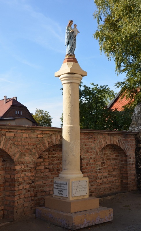 Kolumna Maryjna stoi przy murze, obok wejścia do kościoła św. Mikołaja. Została wzniesiona w 1919 r.