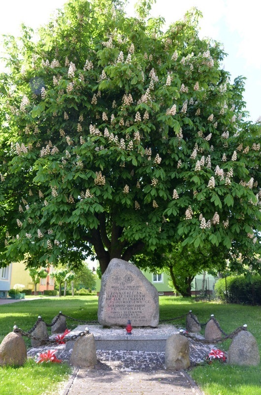 Pomnik poświęcony pamięci żołnierzy Armii Krajowej usytuowany jest pod rozłożystym kasztanem. W miejscu tym 22 października 1943 roku polegli: por. Jan Poznański ps. Pływak i szer. Janusz Jarosławski ps. Szponder. O zdarzeniu tym informuje wyryty napis na głazie narzutowym. Powyżej napisu wyryte zostały wizerunki: orderu Virtuti Militari i kotwicy - znaku Polski Walczącej. Pomnik został odsłonięty 11 listopada 1998 roku.