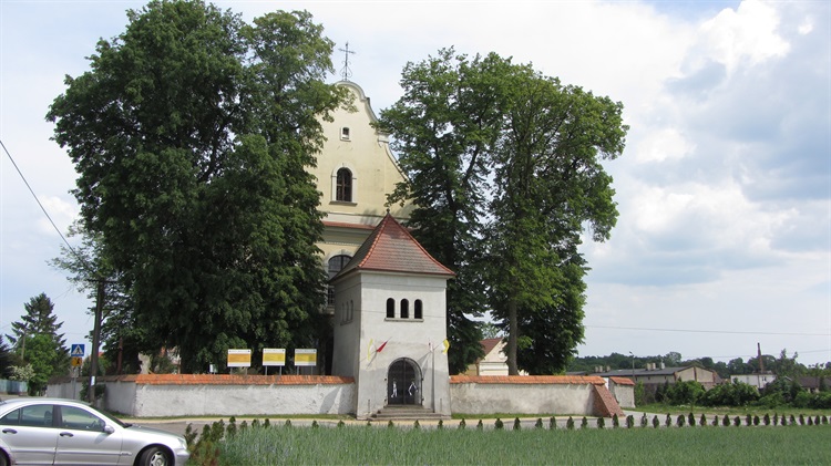 Barokowy kościół w Wąwelnie wzniesiony w połowie XVIII wieku. Otoczony solidnym murem. Wnętrze kościoła utrzymane w stylu późnobarokowym i rokokowym.