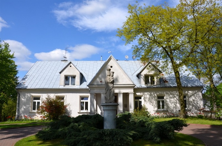 Zabytkowa plebania jest kolejnym godnym uwagi obiektem wzniesionym na Wzgórzu Kościelnym. Ten murowany i otynkowany obiekt zbudowany został na początku XIX wieku. W 1905 roku plebania została przebudowana w modnym w owym czasie stylu dworkowym. Wyróżnia się przede wszystkim gankiem z kolumnowym portykiem pełniącym funkcję zadaszonego wejścia. Plebania wpisana jest do rejestru zabytków. Przed plebanią, na środku okrągłego klombu ustawiona jest na kolumnie figura Matki Bożej Kębelskiej.