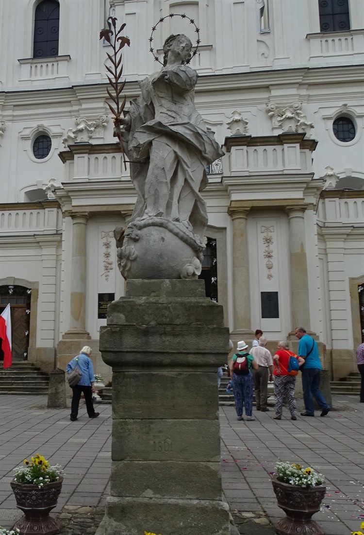 Na dziedzińcu przed Sanktuarium św. Jana z Dukli znajduje się figura Matki Boskiej. Kamienna figura jest ustawiona na wysokim cokole, na którym jest wyryty napis: „Pod Twoją obronę uciekamy się Święta Boża Rodzicielko”. Została wzniesiona w 1861 r.