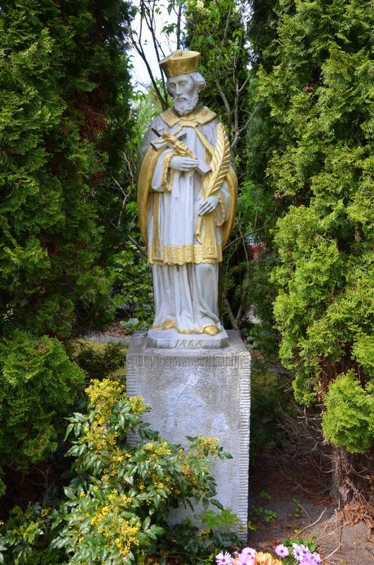Figura Jana Nepomucena stoi przed kościołem pw. św. Jerzego. Rzeźba ustawiona jest na kwadratowej płycie o ściętych rogach, na której wyryty jest 1868 rok, w którym zapewne powstała. Figura świętego wieńczy prosty prostokątny postument.