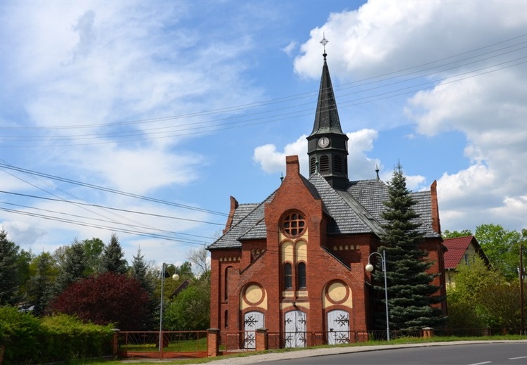 Świątynia została zbudowana w stylu neogotyckim w 1894 r. Wzniesiona została z czerwonej cegły, nakryta wielospadowym dachem z górującym nad nim ośmioboczną wieżą z tarczami zegarowymi i nakrytą ostrosłupowym dachem zwieńczonym krzyżem. Kościół w 1974 roku zostaje przejęty przez parafię katolicką.