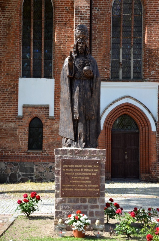 Ogród wykonany na wzór cysterskich ogrodów wirydarzowych usytuowany jest wzdłuż południowej ściany kościoła Chrystusa Króla. Wśród wytyczonych alejek z ławkami i rabat kwiatowych ustawiona jest figura Chrystusa Króla, patrona świątyni oraz zegar słoneczny. Postać Chrystusa stoi na prostokątnym murowanym postumencie, na którym umieszczona jest tablica inskrypcyjna. Nieopodal figury usytuowany jest zegar słoneczny – symbol upływającego czasu.