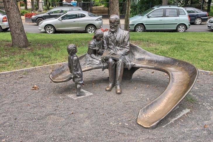 Ławeczka przedstawia Edmunda Bojanowskiego w otoczeniu dzieci. Ławeczka przechodzi płynnie w zjeżdżalnię. Ławeczkę odsłonięto 9.08.2014 r. z okazji dwusetnej rocznicy urodzin społecznika.