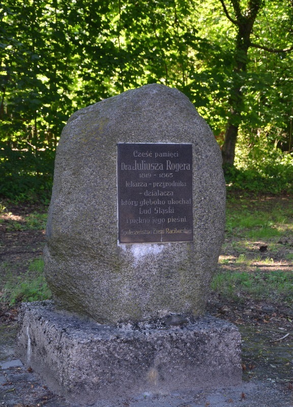 Pomnik upamiętniający dr Juliusza Rogera znajduje się nieopodal dawnego szpitala wzniesionego z jego inicjatywy. Pomnik składa się z prostokątnej podstawy, na której położony jest głaz narzutowy z wmurowaną tablicą o treści "Cześć pamięci Dra Juliusza Rogera / 1819 – 1865 /, lekarza – przyrodnika – działacza, który głęboko ukochał Lud Śląski i piękno jego pieśni. Społeczeństwo Ziemi Raciborskiej". Jego nagrobek ufundowany przez księcia raciborskiego Wiktora I znajduje się na cmentarzu nieopodal kościoła pw. św. Magdaleny w Rudach Wielkich.