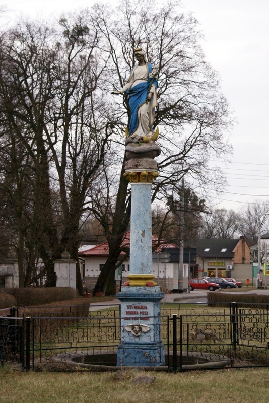 Figura Najświętszej Maryi Panny Niepokalanie Poczętej usytuowana jest na skwerze w centrum Rud. Rzeźba pochodząca z około 1870 r. została wykonana przez artystę Jana Baltazara pochodzącego z Darkovicek. Figura Matki Bożej wieńczy kamienną kolumnę posadowioną na prostokątnym dwustopniowym postumencie, ustawionym na podstawie, na środku dna fontanny. Na postumencie wykonana jest płaskorzeźba putta z rurką wystającą z ust służącą do wylewu wody na zewnątrz. Powyżej główki putta inskrypcja w języku łacińskim. Postać Najświętszej Maryi Panny Niepokalanie Poczętej stoi na kuli ziemskiej, na półksiężycu, depcząc łeb piekielnego węża. Matka Boża z aureolą nad głową i narzuconym niebieskim płaszczem trzyma w lewej ręce lilie.