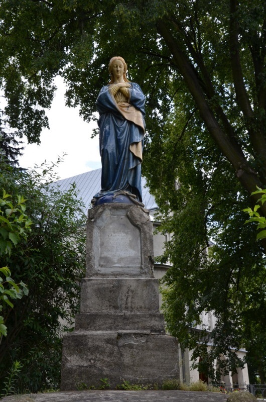 Przed kościołem św. Stanisława Biskupa, na skraju zbocza, na wysokich postumentach stoją figury NMP i św. Józefa.